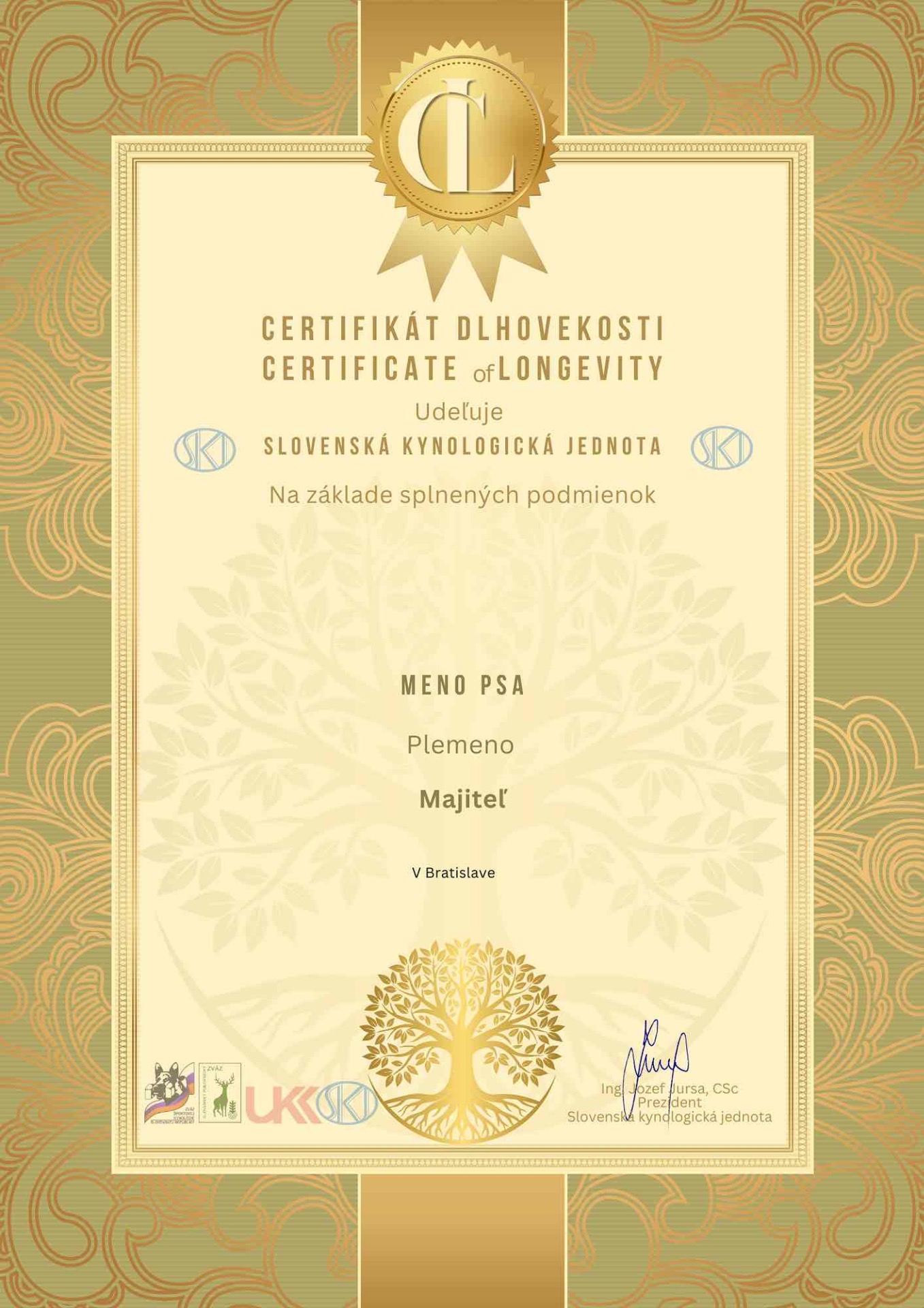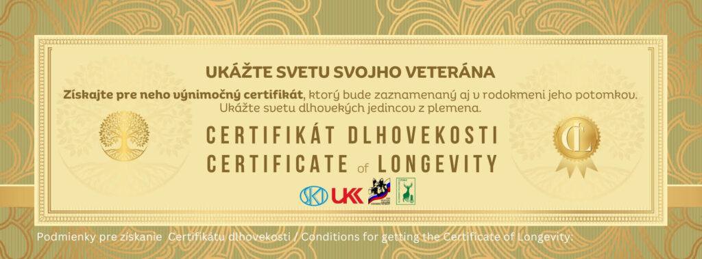 Ide o jedinečný certifikát, ktorým chovateľ potvrdzuje dlhý vek a pevné zdravie vo svojom chove. Dajte svetu na vedomie, že k nim patríte.