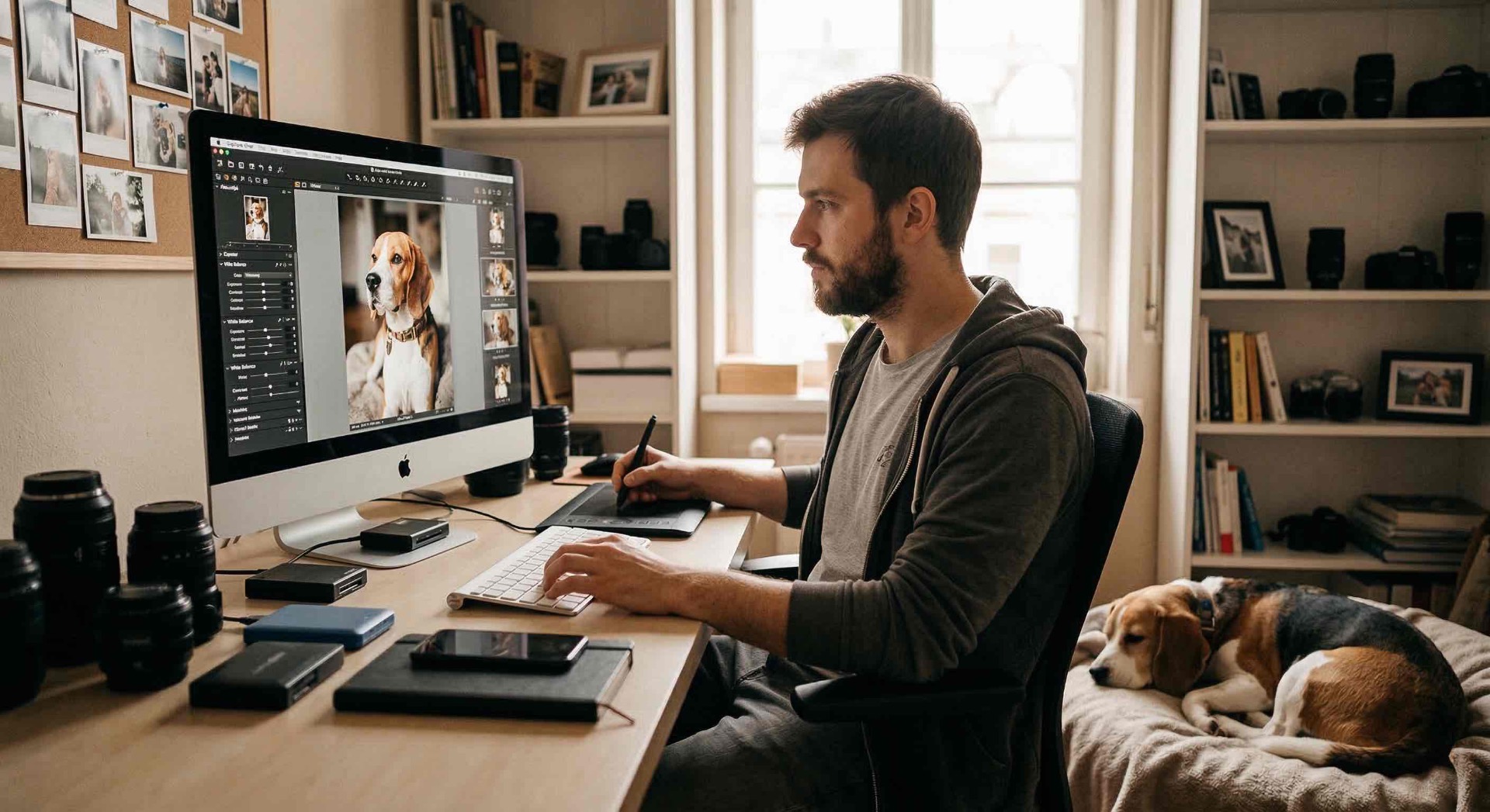 Absolútny priemyselný štandard pre všetkých fotografov. Ak máte zrkadlovku a fotíte do formátu RAW, Lightroom je nutnosť. Slúži nielen na úpravu farieb a svetla, ale aj ako obrovský katalóg, v ktorom si môžete roztriediť tisíce fotiek vašich bíglov podľa dátumu či hviezdičiek.