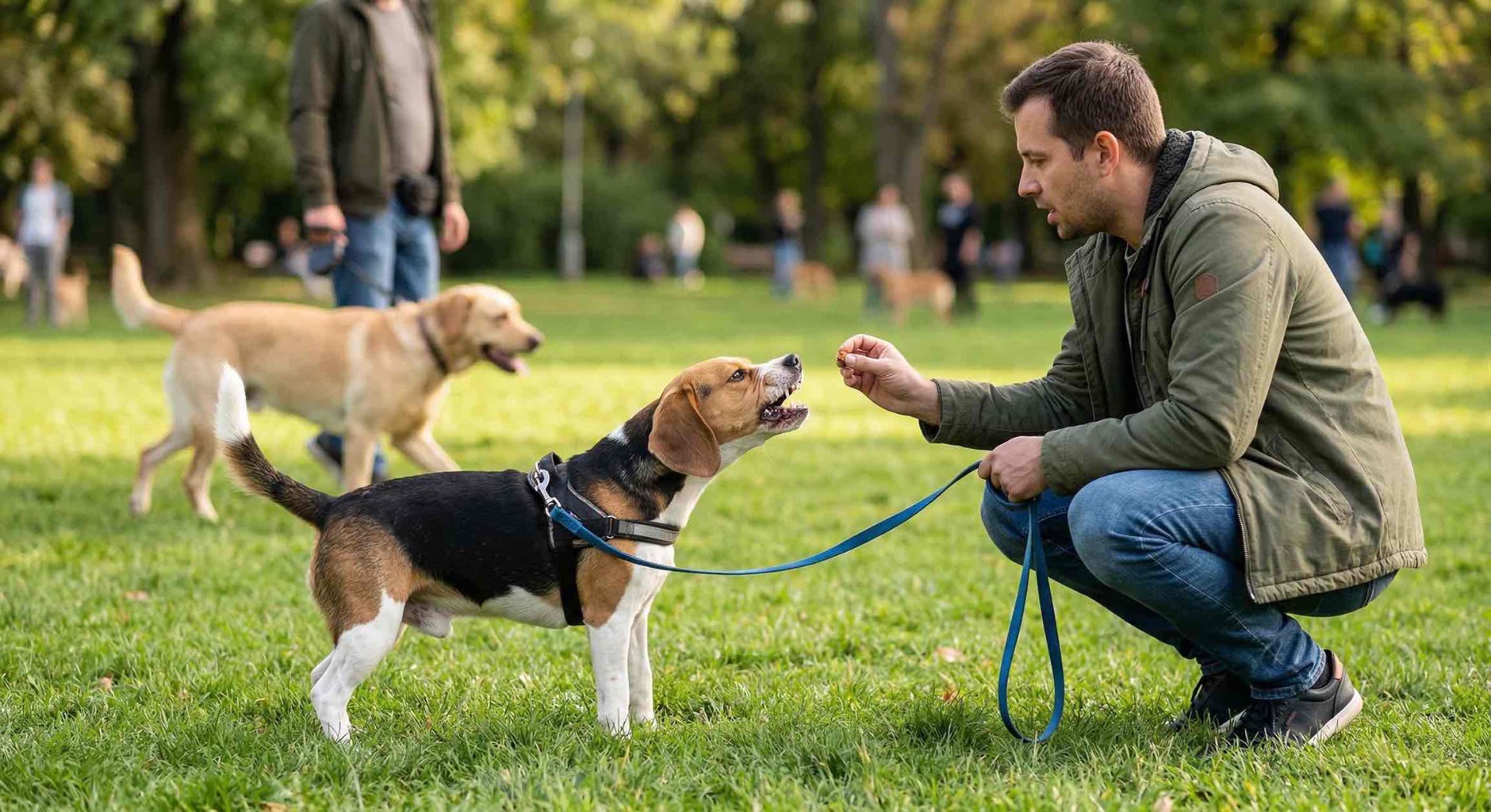 ● Spoznajte jeho prahovú hranicu: Toto je najdôležitejšie pravidlo pre starších psov. Ak váš bígl šteká na iné psy zo vzdialenosti 10 metrov, znamená to, že je za prahom a v tom momente sa už nič nenaučí (jeho mozog je v režime prežitia). Zistite, z akej vzdialenosti je ešte schopný vnímať vás a zjesť pamlsok (napríklad 25 metrov). Tam začnite trénovať.