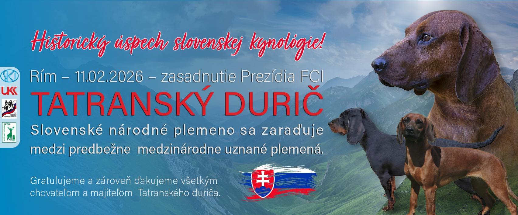 V posledných rokoch sa slovenská kynológia dočkala jedného z najzaujímavejších fenoménov, vznikol nový slovenský lovecký pes Tatranský durič. Po dlhoročnej práci slovenských chovateľov a poľovníckej verejnosti sa mu podarilo získať predbežné medzinárodné uznanie od FCI (Fédération Cynologique Internationale) cez Prezídium v Ríme. To znamená, že plemeno už nie je neuznané, ale posúva sa k uznaniu svetového štandardu v rámci FCI VI. (duriči a farbiari).